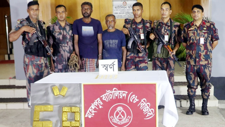 ঝিনাইদহের মহেশপুরে এক কোটি ৮৭ লাখ টাকা মূল্যের ২০টি স্বর্ণের বারসহ দুজনকে আটক করেছে ৫৮ বিজিবি।